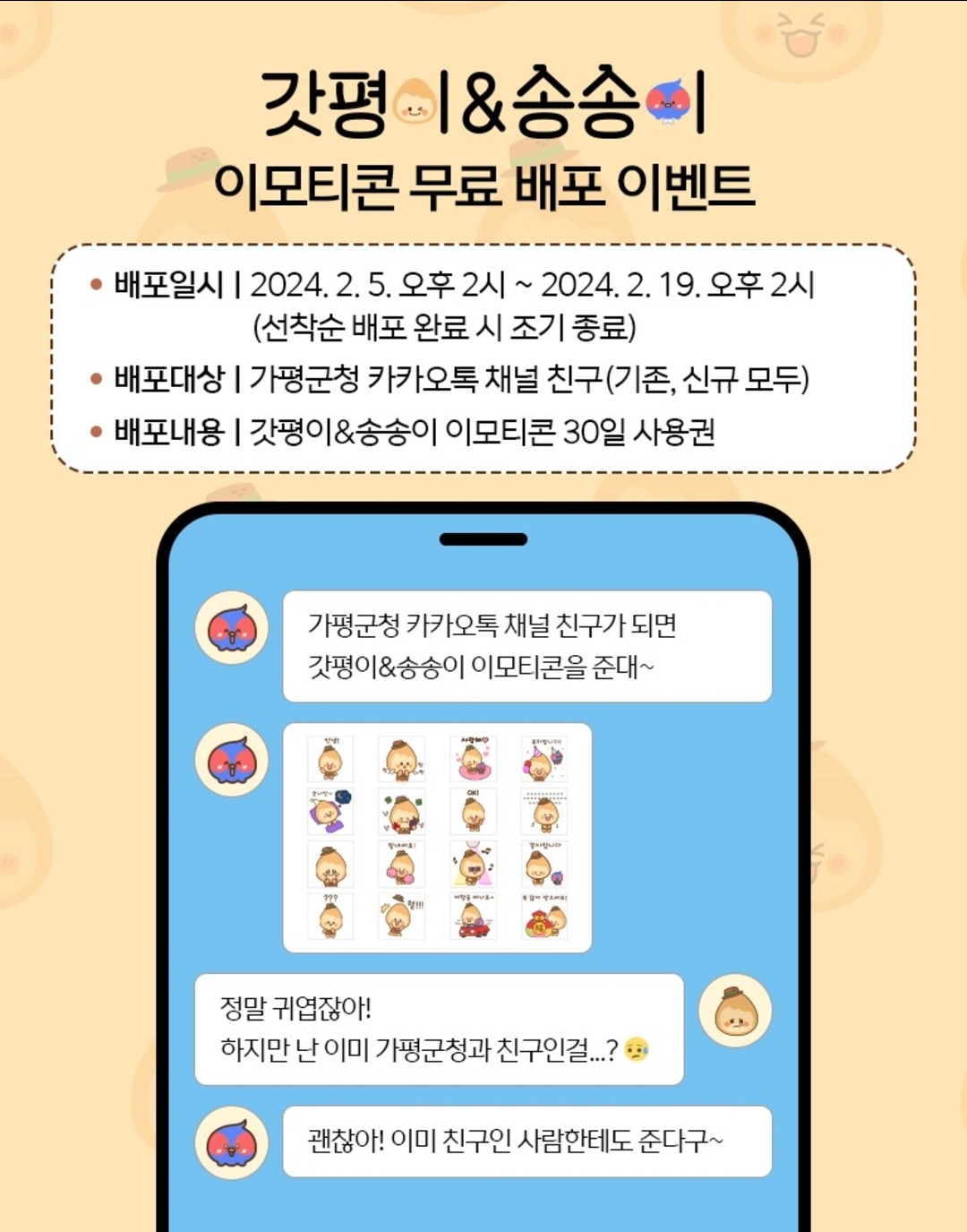 오늘의 이모티콘은 가평군청, 갓평이 & 송송이 입니다~