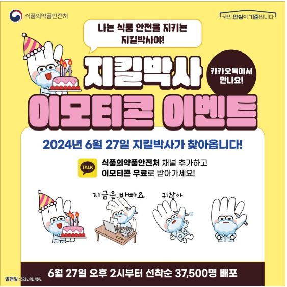식품의약품안전처 채널에서 지킬박사 이모티콘을 무료로 받아가세요!